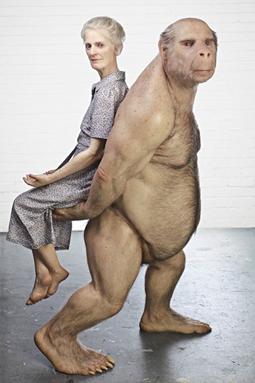 One of the highlights for me was getting to see Patricia Piccinini’s 2012 work The Carrier. I actually can’t think of words to describe the encounter. The sculpture is so magnificent and so realistic (down to every last hair) that it really seemed as though this strange creature would suddenly wander off; treading heavily, perhaps, with his large feet, but slowly and carefully so as not to give the old lady an uncomfortable ride. Despite their odd-couple look, the pair seemed serene and comfortable together, and contrary to their hyperreality and the darkened room they were positioned in, they didn’t seem creepy. In terms of the Uncanny Valley, I felt as though they were ‘real’ enough not to provoke revulsion, possibly because they don’t move to spoil the effect.
