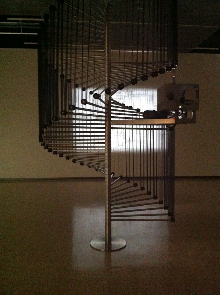The projector somewhat resembles a spiral staircase and the film is looped up and down along protruding arms, so that as the images play out on the wall, the film itself is seen moving up and down this specially made apparatus… an apparatus produced in the very same Berlin workshop.