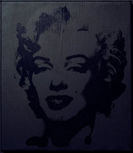 Elaine Sturtevant, 2004, Warhol black Marilyn. [Silksceen and acrylic on canvas, 350 x 400mm] Anthony Reynolds Gallery, London, England.
