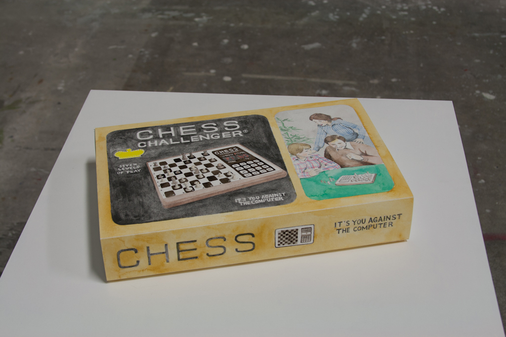 Justine Giles, 2014. Chess Challenger 7 reconstructed from memory with the help of two siblings and Google [watercolour and graphite on paper, foam core board, 380 x 240 x 65mm]